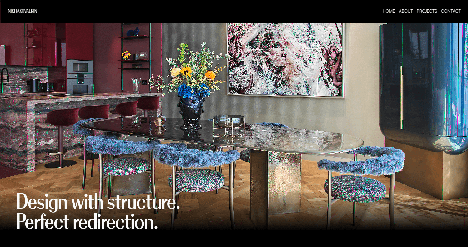 A minimal portfolio website for an interior designer, crafted to showcase their work through a clean and refined visual language.